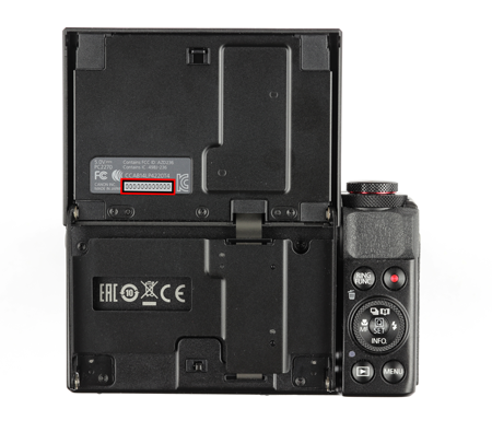 In genere, il numero di serie della fotocamera PowerShot o IXUS contiene 12 cifre, tuttavia, per alcuni modelli precedenti, il numero di serie potrebbe contenere 9 o 10 cifre.